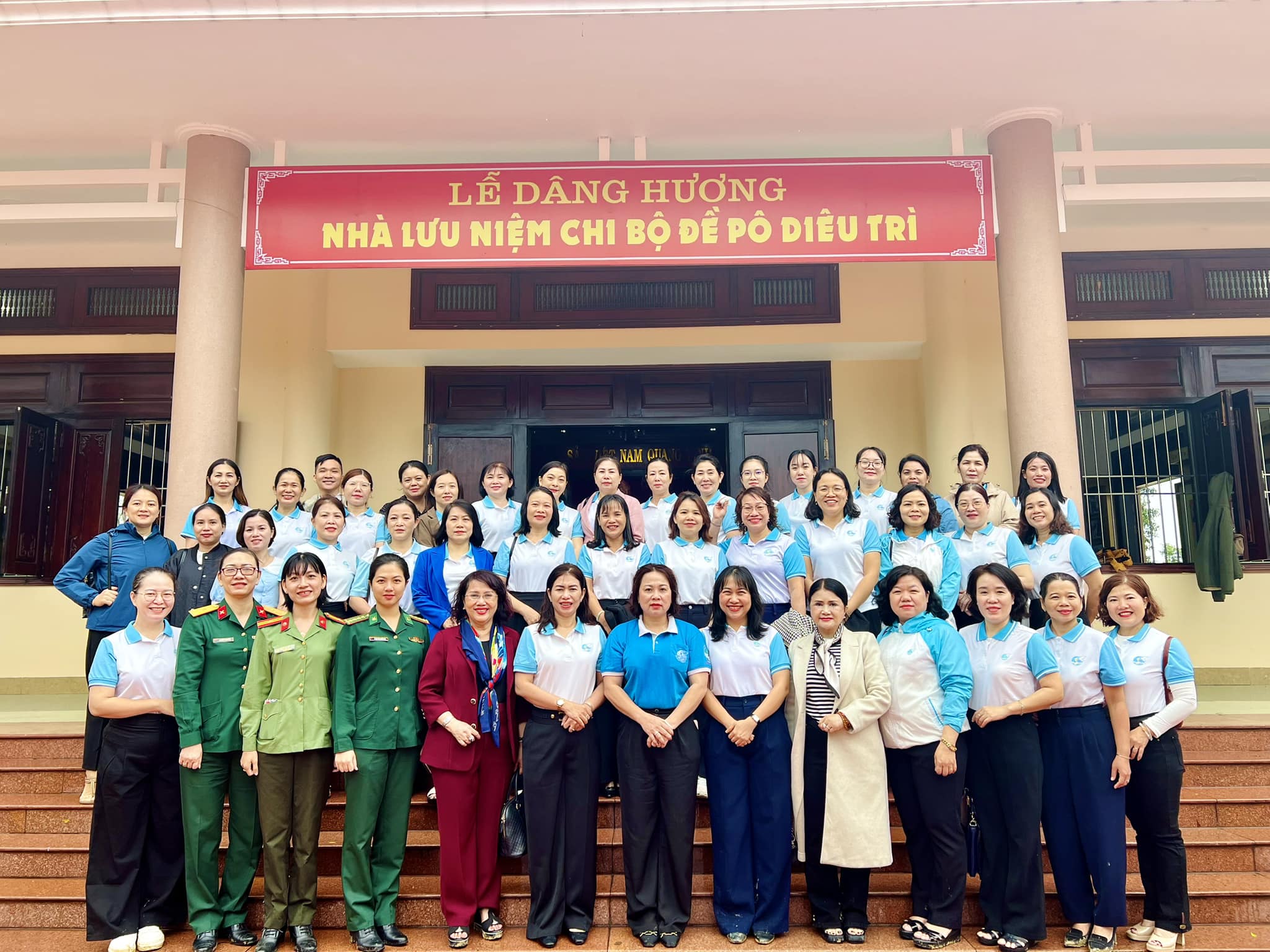 Hình chụp lưu niệm tập thể đoàn tại Nhà lưu niệm Đề Pô Diêu Trì